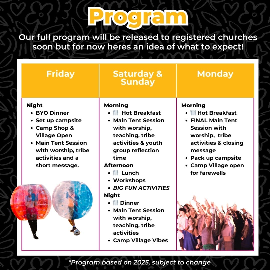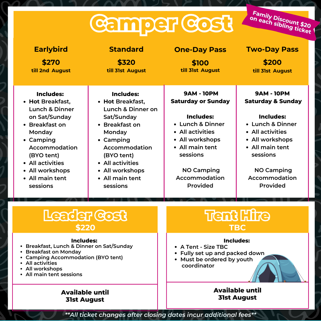After camp, your church will then be invoiced for those who attended camp, as well as the church administration fee and any tents that were hired.